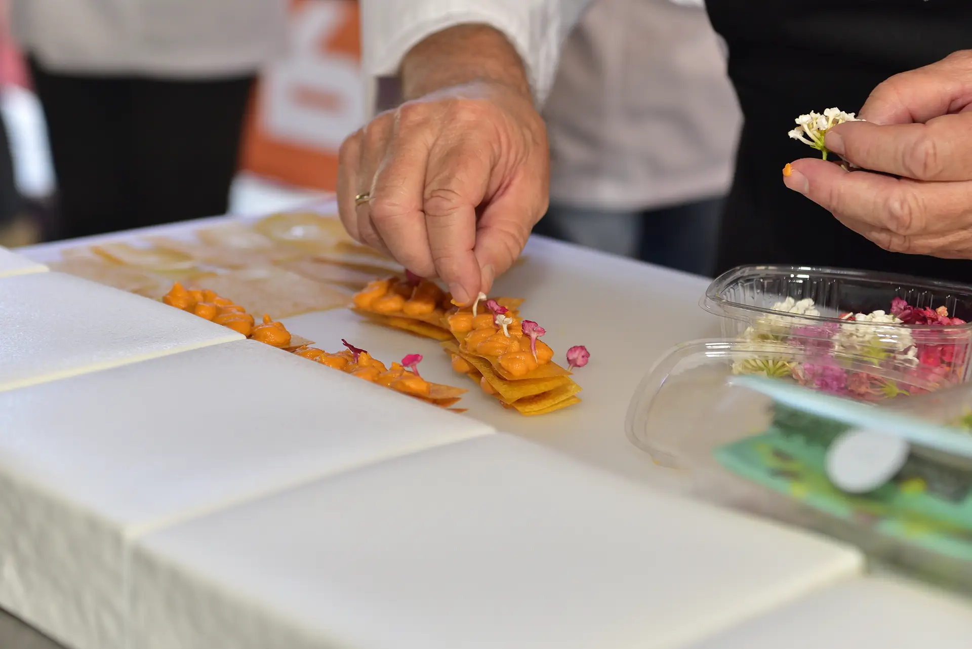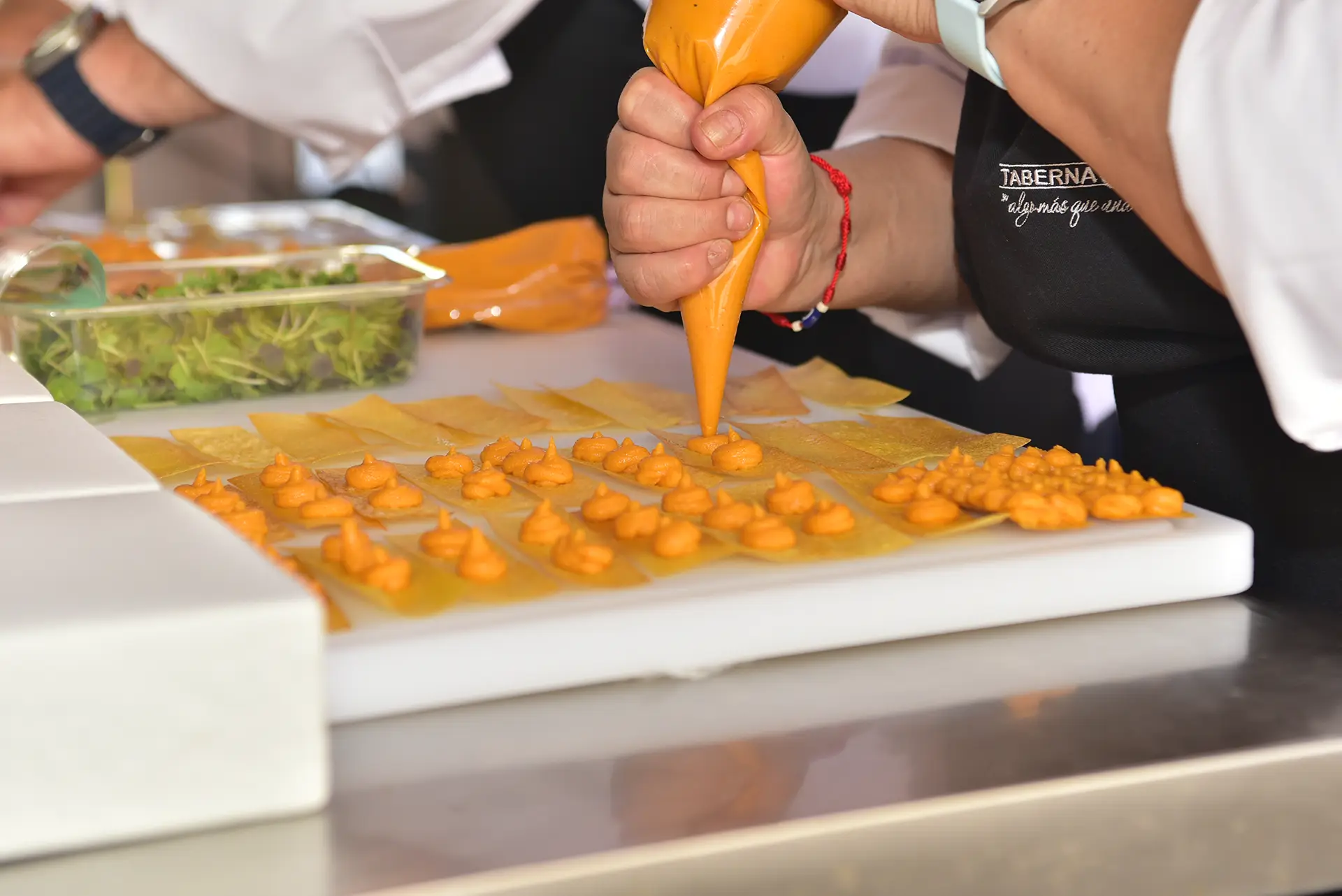 Cocinero: Álvaro Abad, formado en las mejores cocinas de Alicante hasta en restaurantes con estrellas Michelin, actualmente dirige la gastronomía del hotel Mercure Benidorm, apasionado de su trabajo y de los concursos gastronómicos habiendo participado en los más importantes y ganado alguno de ellos.